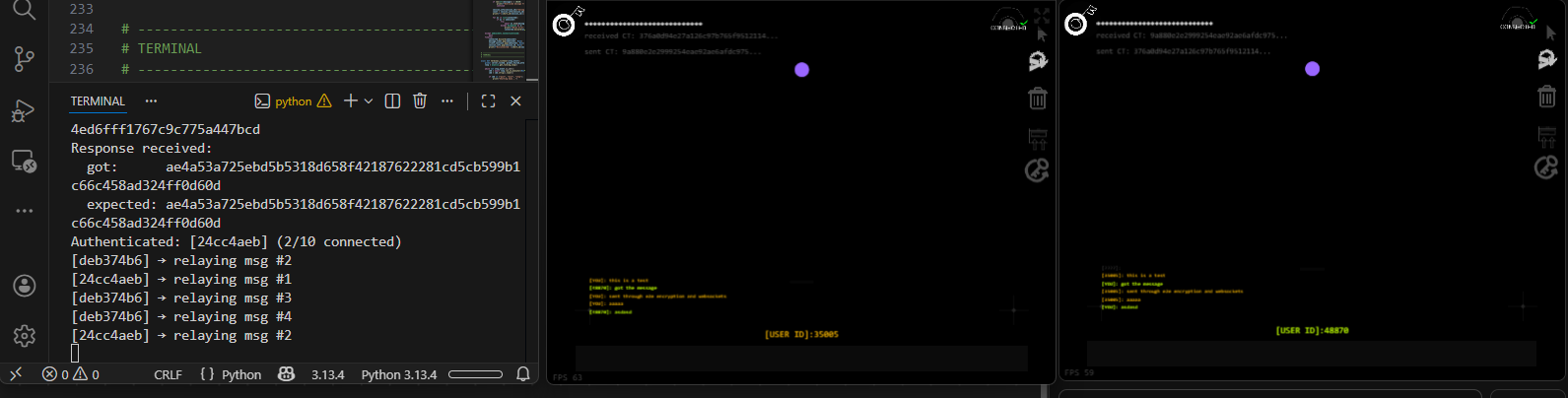 Connects through WebSocket's and utalizes AES256 end to end encryption